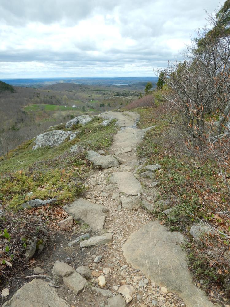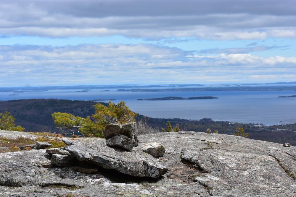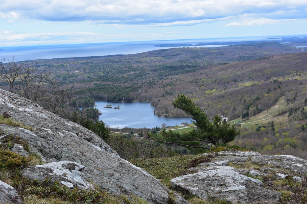 At 1,280 feet, Bald Mountain is the fifth highest peak on the eastern seaboard and offers excellent views of Western Penobscot Bay and surrounding coastal mountains. Bald Mountain is also home to one of the midcoast’s largest rare subalpine natural communities. An interpretive sign near the summit helps describe this habitat and identifies some of the more unusual alpine plants found on the mountaintop.