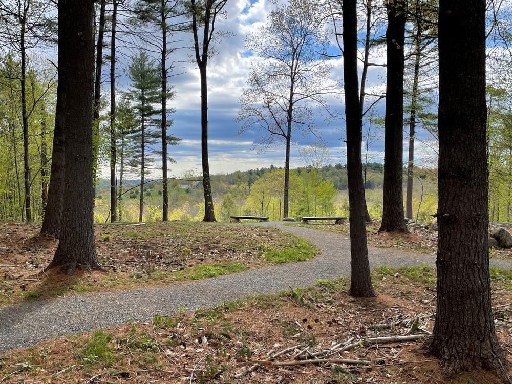 A quarter-mile compacted gravel universally accessible trail weaves through the tall white pines of the burial ground, offering a chance for reflection and a lovely view. The fall foliage is stunning in late September and October.