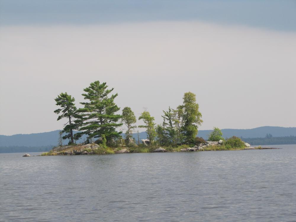 It is 4.3 miles across Baskahegan Lake to the outlet, where there are remains of a washed-out dam. Stay in the middle of the main chute (easy quick water) to avoid a spike that is on the far right next to the shore.