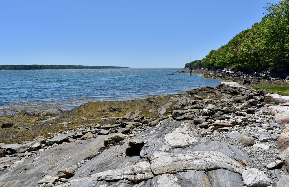 The Bass Rock Preserve features a short and easy hike to the rocky shores of the Muscongus Sound. Bass Rock also features a geologic mystery: a perfectly round four foot deep hole in the rock of unknown origin.