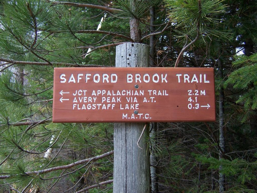 The route of the Safford Brook Trail approximately follows the old "Dead River Route" part of the A.T. from the 1930s before the creation of Flagstaff Lake. The views from Myron H. Avery Peak, (formerly East Peak), rank with those from Katahdin and White Cap Mountain due to the extensive, above-treeline, alpine area on Avery Peak.