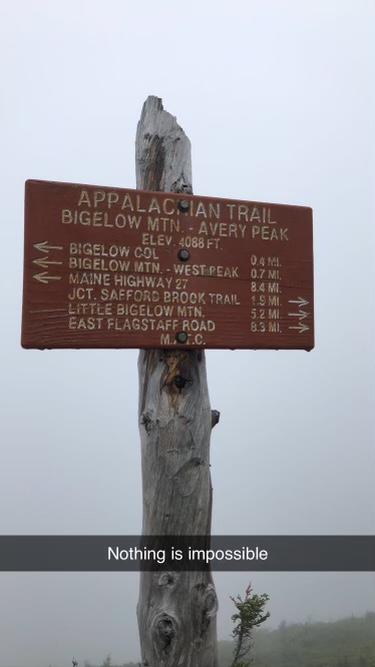 Leaving from the parking area, the trail climbs gradually through forested lands crossing Safford Brook about 0.7 miles above East Flagstaff Road. The trail then becomes more steep until it reaches the junction with the Appalachian Trail. The area right around the intersection is the Safford Notch and it is well known for its "house-sized" boulders. Turning left or north bound will bring you, shortly to the side trail for the Safford Brook Campsite; turning right (or southbound) on the A.T. will begin the climb to Avery Peak. The trail becomes very steep as it climbs up through boulders, and about halfway to the peak, there is a 0.1 mile side trail to the viewpoint for "The Old Man's Head" which offers fantastic views east. From here, there is approximately 0.8 miles of steep climb to Avery Peak (4088'). From the summit hikers have a grand view of the Canadian Border Mountains to the north and the White Mountains of New Hampshire to the southwest, not to mention the views of Flagstaff Lake and the nearby High Peaks. From Avery peak the A.T. continues southbound towards the Fire Warden's Trail, West Peak, and the rest of the Bigelow Range.