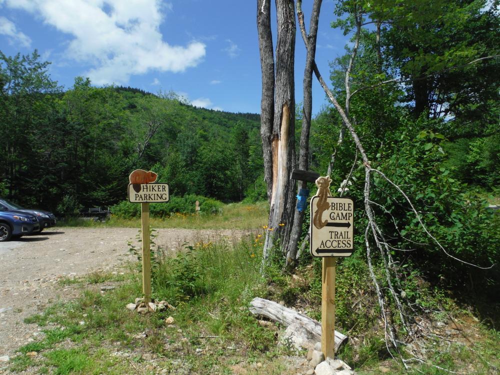 From North: From Philips, the Blueberry Mountain Bible Camp is 8.7 miles from the intersection of ME Route 4 and 142. There should be a sign indicating the entrance to the Blueberry Mountain Bible Camp (a dirt road). Turn on to this road and drive uphill for almost 1.5 miles. The road ends at the Bible camp buildings (look for Diradoudian Lodge); the trailhead and parking is just south of the camp.