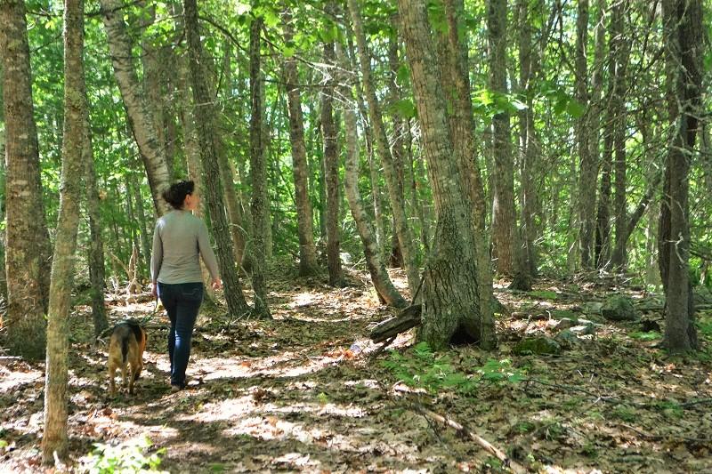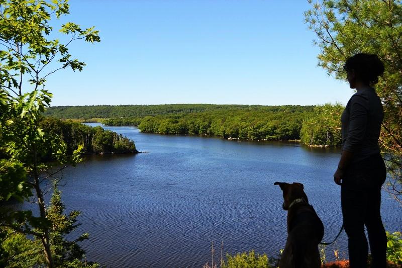 This pleasant and easy walk offers varying topography. From the trailhead, the Oaks Trail travels 0.3 miles though the woods, where it meets up with with the Pine Trail to the left (west) and the Erratic Trail to the right (north). Either of these trails may be taken to form a loop out to the 0.2 mile long Bluffs Trail. Elaborate stone work leads up to the bluff, and upon reaching the bluff there are incredible panoramic views of the Bagaduce River. A hike out on the Oaks Trail, looping around the Bluff Trail, then returning back on the Oaks Trail, makes for a hike of about 1 mile.