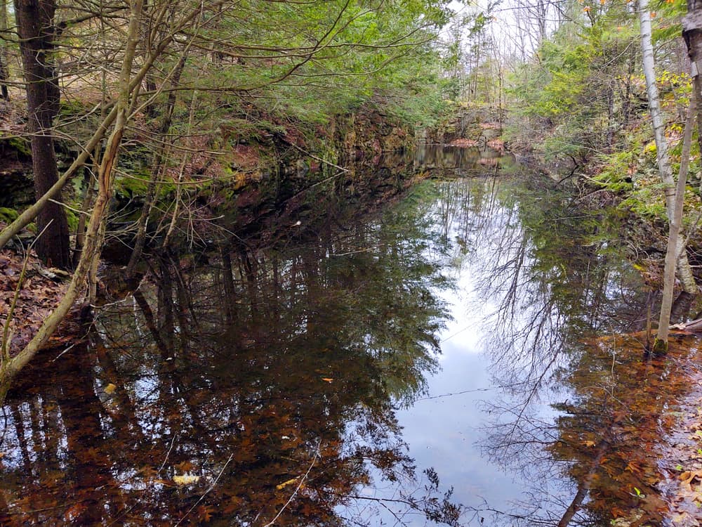 The Corridor Trail connects to two hiking trails. The Elmwood Trail travels 1.4 miles south to Elmwood Road. The Sweetster Spur travels 0.2 miles north to Sweetster Road. The paths are narrow and includes rocks and roots and wet areas — they are not accessible for trail users with mobility challenges. Please note these trails cross private land, and respect all trail postings. Bikes are not allowed on these paths; horses, runners, hikers — and dogs under strict control — are welcome.