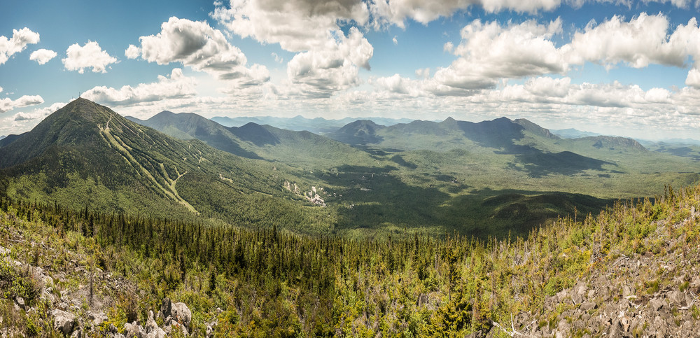 As the name suggests, Burnt Hill was devastated by a forest fire in the early 1900s that started on the mountain and traveled across part of Sugarloaf towards the Crocker Mountains. This fire burned an estimated 5,500 acres and helped to give Sugarloaf some of the ski areas that are enjoyed in the winter season today. While Burnt Hill is often overlooked by hikers for some of the other mountain hikes, it offers a bald topped summit with views unlike most in the region. The summit is clearly marked by a large cairn as well as spectacular views including Spaulding, Sugarloaf, Crocker and South Crocker Mountains as well as the Mount Abraham and Bigelow Mountain Ranges.
