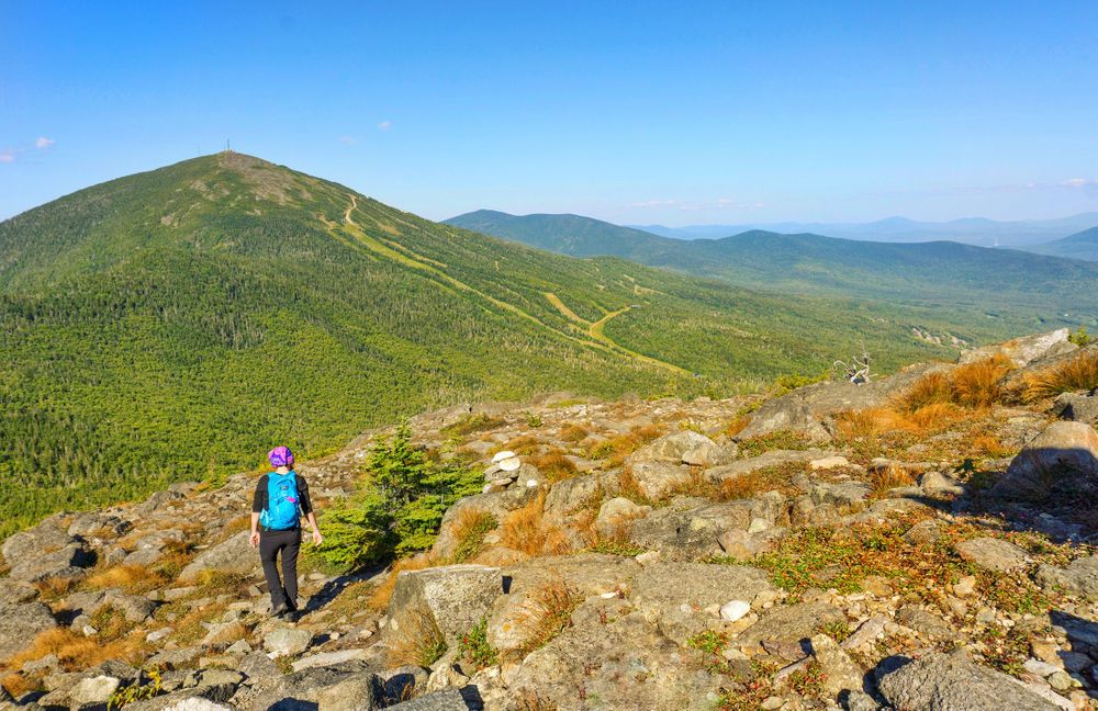 The last section of the hike is through a treeless Alpine landscape that is filled with rocky boulders and stunning views all around. Keep watch for cairns and blue blazes that can be easy to miss, but will lead the way to the summit.