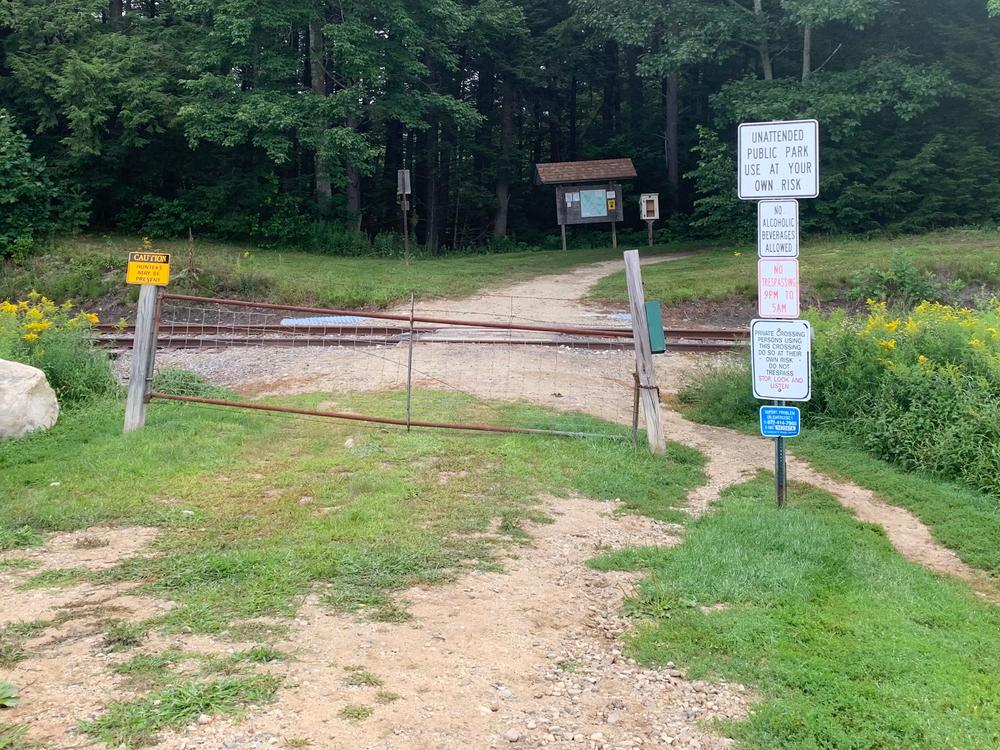 Town of North YarmouthPlease park in the small gravel parking area just north of the railroad bridge on North Road in North Yarmouth (roughly a mile north of Dunn's Corner and the intersection with Memorial Highway/ME-9). Walk along the right-of-way to the property's entrance at the gated railroad crossing. Please do not cross onto the neighbor's property to the left as you walk toward the tracks.