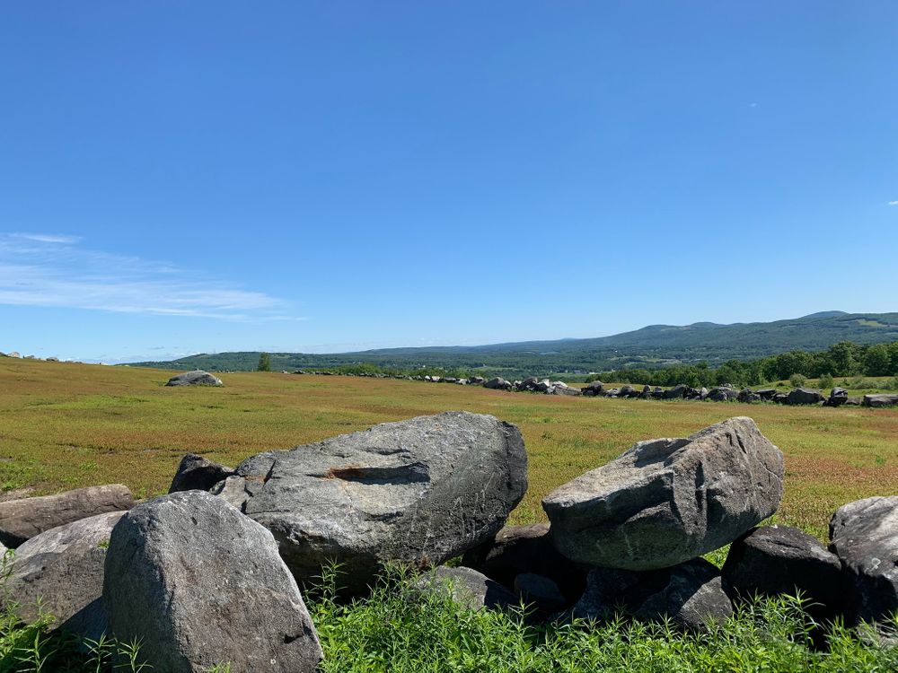 In the fields, the trail follows the stone walls in most places. Hikers should stay as close to the stone walls as possible to prevent harming the plants in the fields. The trail may be closed at certain times of the year to protect the fields and prevent interference with harvesting or field maintenance activities. Parts of the trail can be very muddy in the spring.