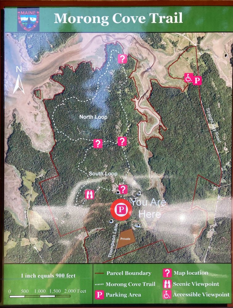 The Morong Cove Unit was purchased in part with support from the Land for Maine's Future program. Most of the funding for the Morong Cove Trail was provided by a grant from the Recreational Trails Program of the Maine Department of Conservation.