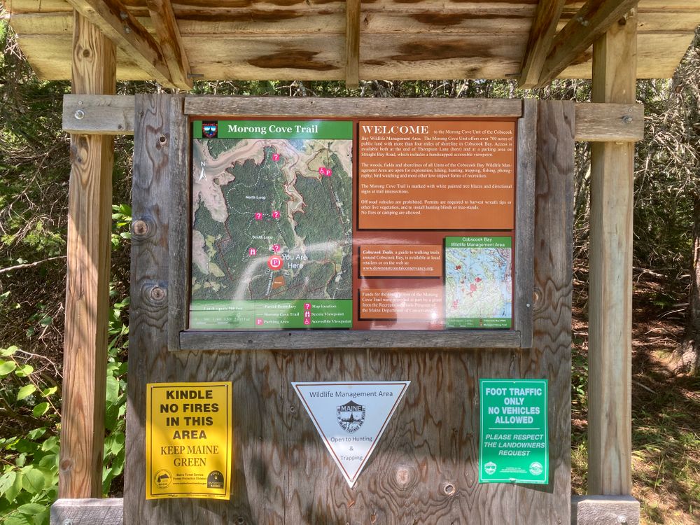 The Morong Cove Trail is part of the Cobscook Bay Wildlife Management Area, a network of conserved lands owned and managed by the Maine Department of Inland Fisheries and Wildlife. Composed of over 2,000 acres of mainland and islands in and around Cobscook Bay and more than 23 miles of shoreline, the Management Area provides valuable wildlife habitat as well as public access and recreational opportunities. For more information, please contact the Regional Wildlife Biologist at (207) 434-5927.