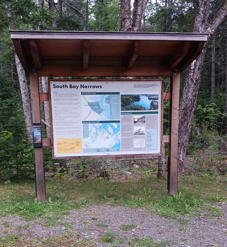 South Bay Narrows is open dusk to dawn, from May to October. It is a part of Cobscook Shores, a system of fifteen waterfront parks that are privately owned and/or maintained by Cobscook Shores INC., a family funded Maine charitable foundation. The parklands offer public access and recreational use including walking, picnicking, hiking, biking, camping, and paddling in Cobscook Bay.