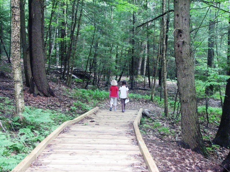A cooperative project of Freeport Conservation Trust and the Casco Bay YMCA, the trail passes over hills and boardwalks to the marshy shore of the Cousins River. Side trails lead to/from Lambert Road and the Freeport Inn and Cafe.
