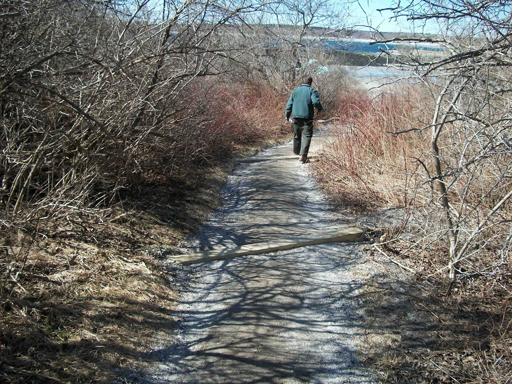 Just to the west of the park's facilities there is a gravel service road located immediately behind the sand dunes that park staff frequently use. This road provides a peaceful walk that passes by wetlands where bird watching is optimal.