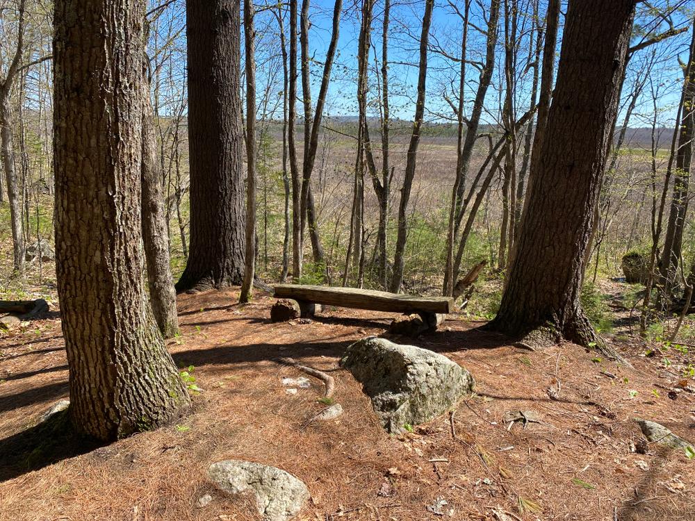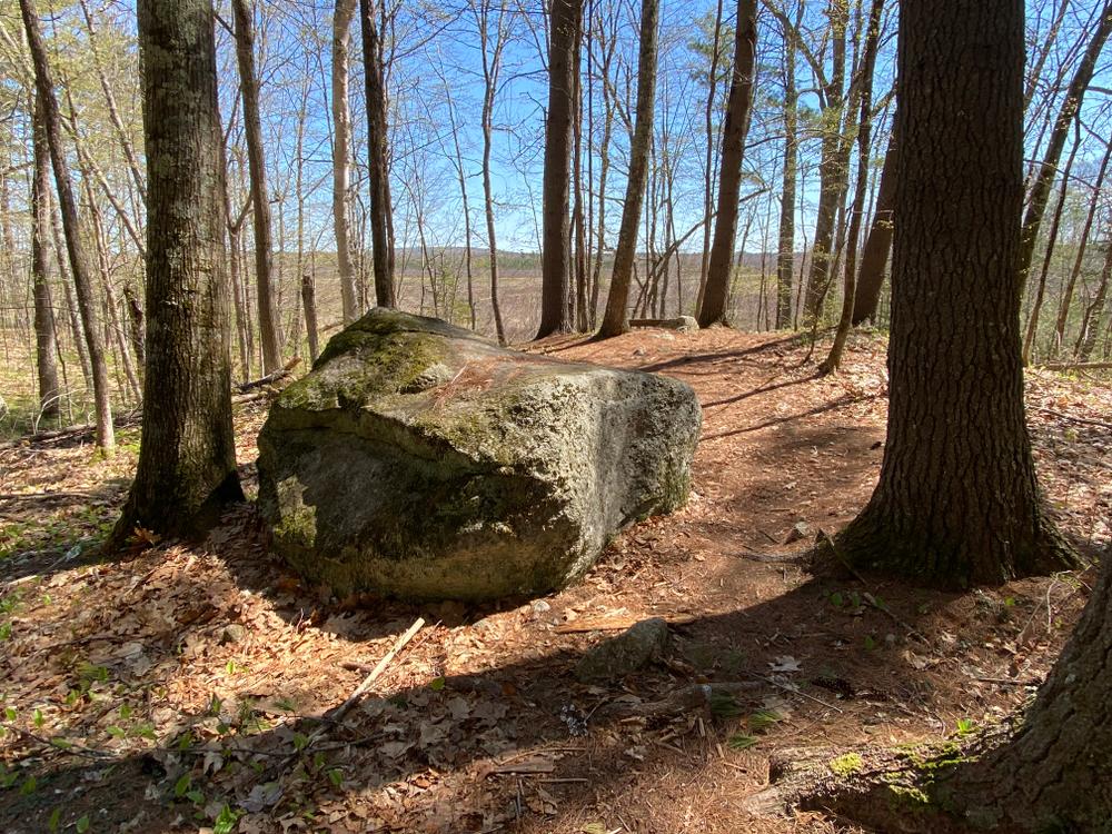 Woodlot Trail (moderate, 0.7 miles): This trail passes through a mixed hardwood forest that was managed as the farm woodlot. The trail begins at Curtis Rock (a glacial erratic) and follows the eastern edge of the bog, providing several wonderful views with benches before looping back to an intersection with the Curtis Rock Trail.