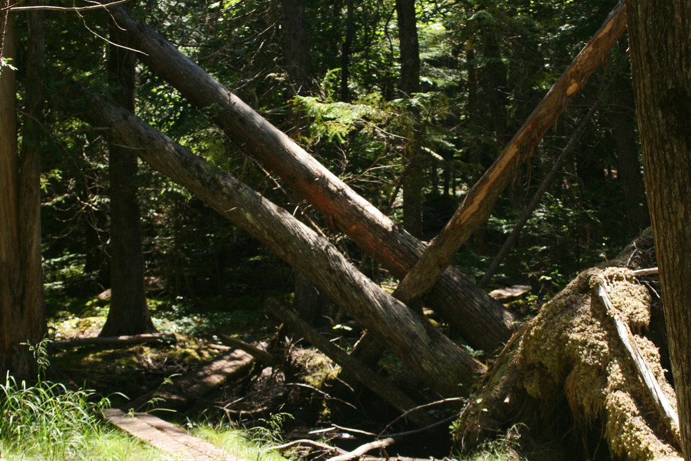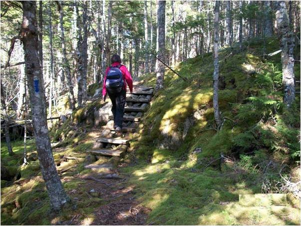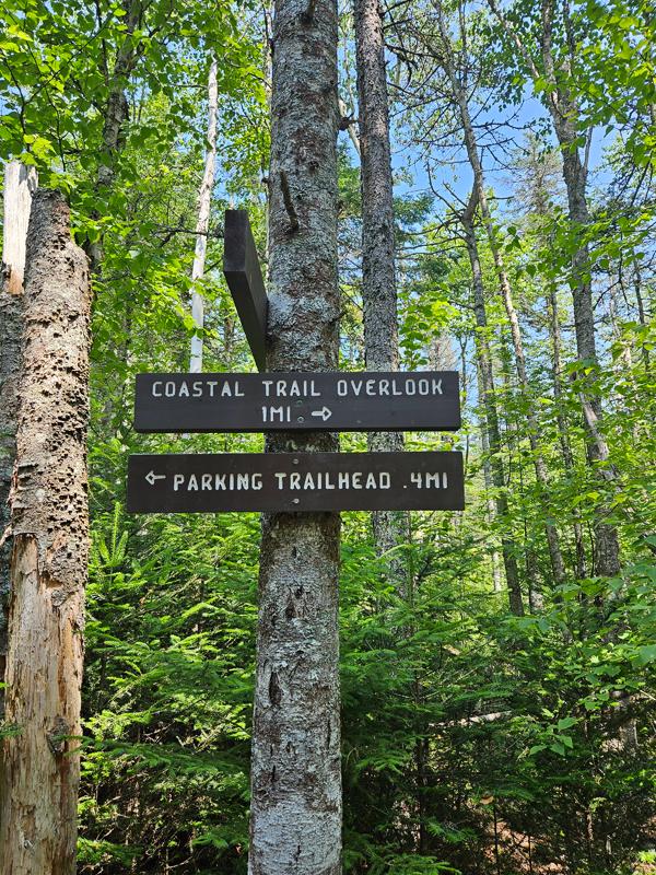 Coastal Trail to Ocean (2.8-mile roundtrip, allow 2 hours): This is a forested path that runs through a cedar swamp and maritime spruce-fir forest before reaching a promontory overlooking the ocean. It is the easiest trail segment offering a visitors’ first spectacular view of the ocean from the high cliffs that are prominent along this property.