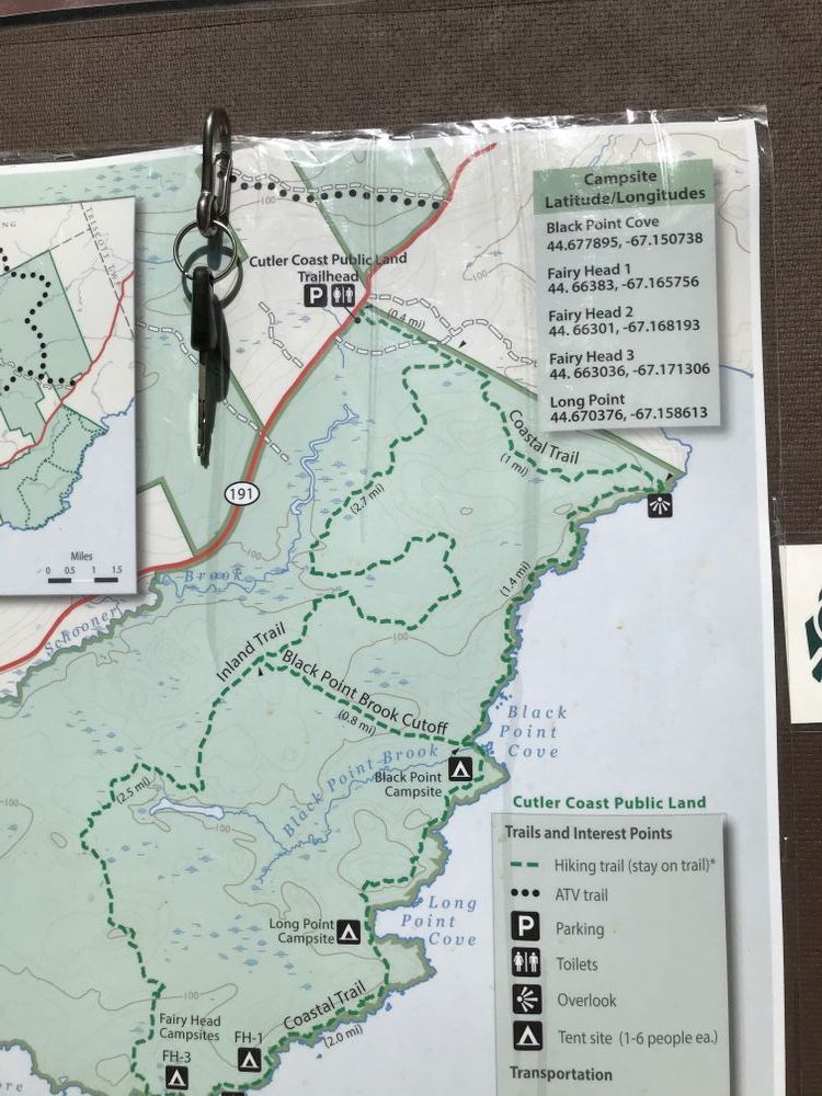 Cobscook Trails Project: The trails on Cutler Coast Public Reserved Land are part of a larger network of hiking trails in known as Cobscook Trails. Cobscook Trails is a cooperative project of conservation landowners and community partners that seeks to expand opportunities for nature-based recreation and tourism in eastern Washington County. The group produces "Cobscook Trails: A Guide to Walking Opportunities around Cobscook Bay and Bold Coast Region", a 55 page booklet describing walks on 19 area properties. Find more information about Cobscook Trails, including how to purchase the guidebook, visit: The Cobscook Trails Project.