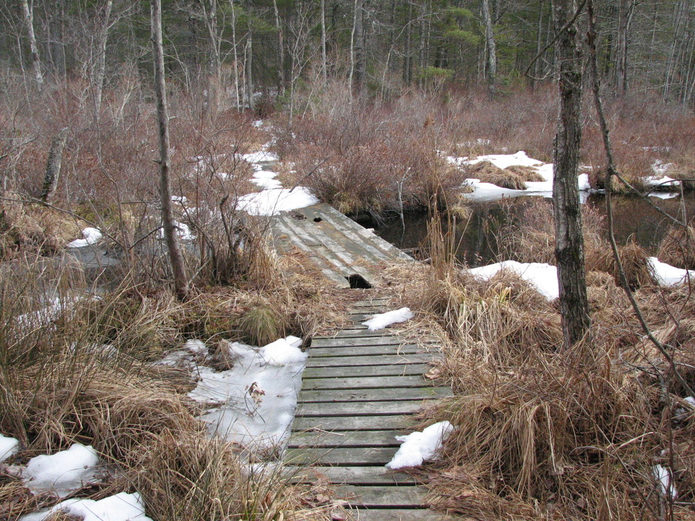 This unmarked but easily followed trail leads down to Mud Ponds and loops around the smaller of the two ponds through nicely wooded areas. The backside of the trail between the two ponds provides an unexpected sense of wilderness and remoteness.