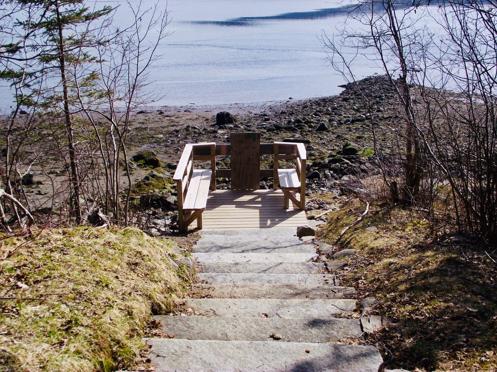 There is a dirt road that leads to a nice parking lot and place for a picnic. There Devil's Head trail (the first right trail) is pretty steep in some locations but leads to two scenic views of the islands in the St. Croix river and the coast of New Brunswick, Canada. There are some wonderful photo opportunities also of moss patches.