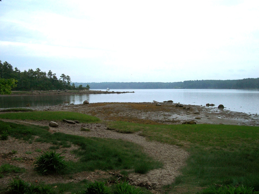 Shore Trail (1.5 miles, easy): The Shore Trail spurs off the Old Farm Road and follows the shores of the Damariscotta River. It is the most popular trail, and hikers can access a sand beach and a pebble beach for swimming to cool off on hot summer days. Visitors can also picnic on the river bank while observing many species of shore birds such as egrets, ospreys, herons, and eagles. Anglers can fish for striped bass, mackerel, and bluefish or dig for clams in the offshore tidal flats. Please check with the Newcastle Town Office prior to digging clams for red tide warnings and other regulations.