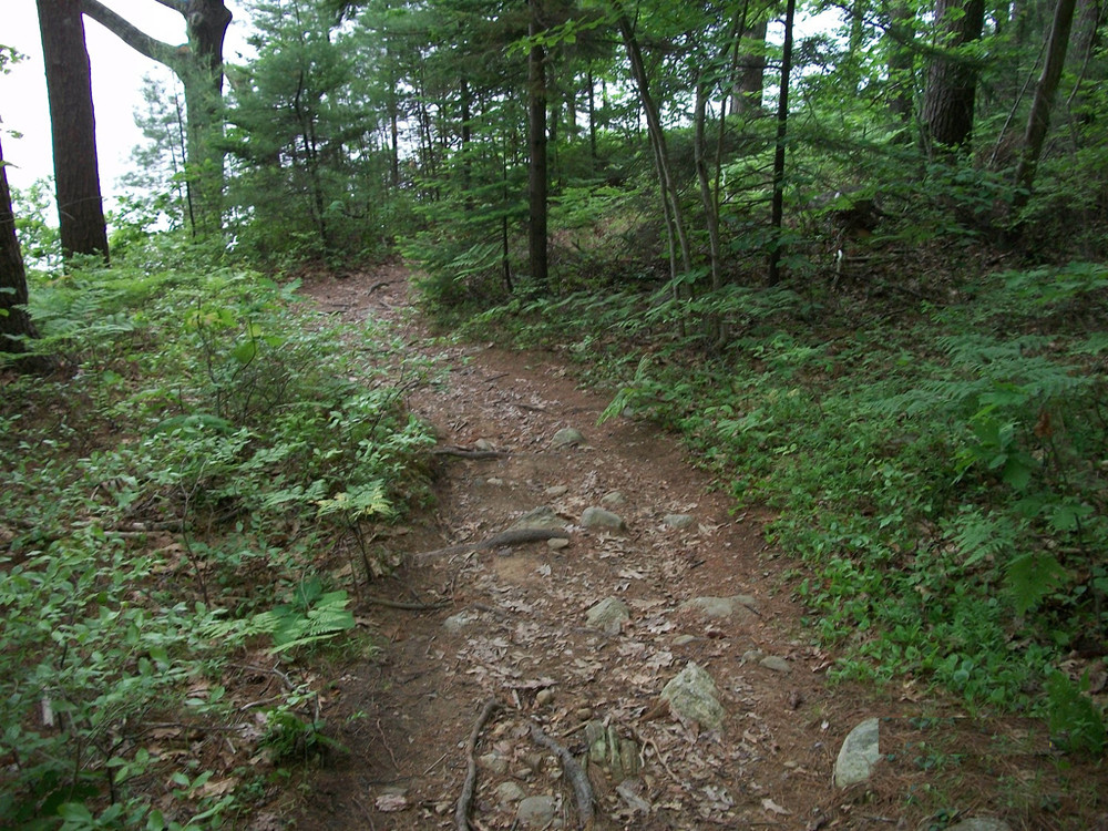 Old Farm Road Trail (2 mile loop, easy): The Old Farm Road Trail leaves from the parking lot and traverses the interior of the property. This trail is an easy hike along old farm roads used by farmers in the 1800's and loggers in more recent times. It winds through a mixed growth forest with gentle slopes and a large stand of red pine and along the way passes many old stone walls, remnants of farmer's property boundaries. There is also an ice pond off from this trail that was used by residents of the area during the winter for ice that was used in their ice boxes for cold storage prior to the introduction of electricity. Several trails branch off from this main loop providing access to different areas of the property. In addition, this trail is also an excellent trail for snowshoeing and cross-country skiing in the winter.