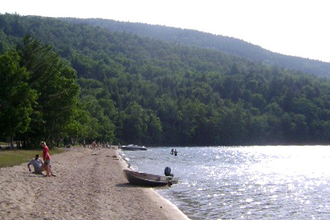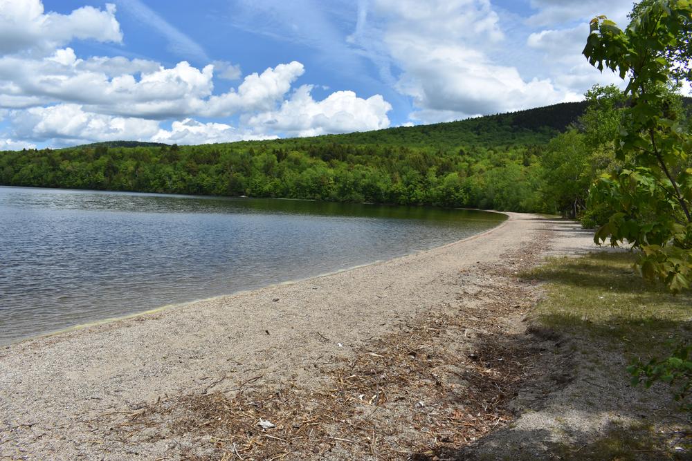 Trails are marked with blue blazes and stone cairns. Camping, swimming, and picnicking are allowed at the beach.