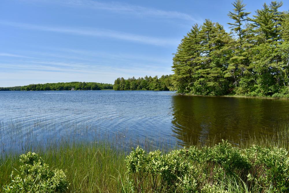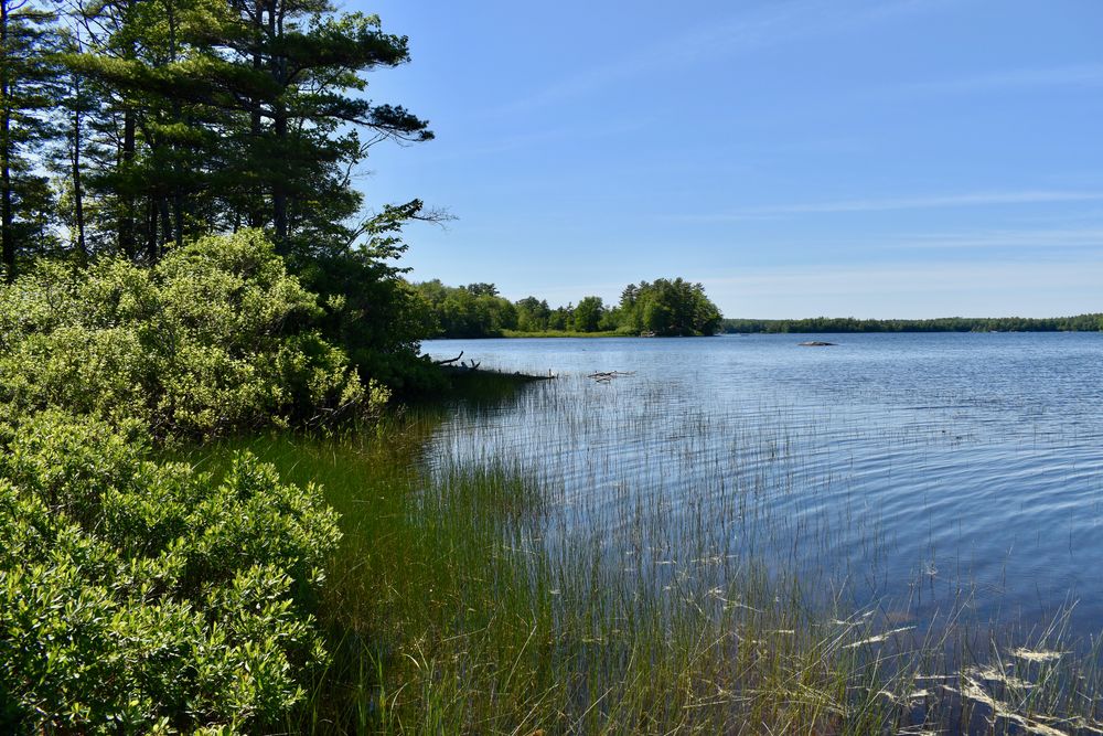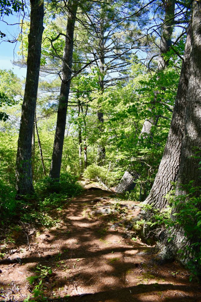 The Blue Trail follows the shore of Pemaquid Pond offering beautiful views. Take special care finding the trail, the trailhead and the kiosk are separated by a private driveway.