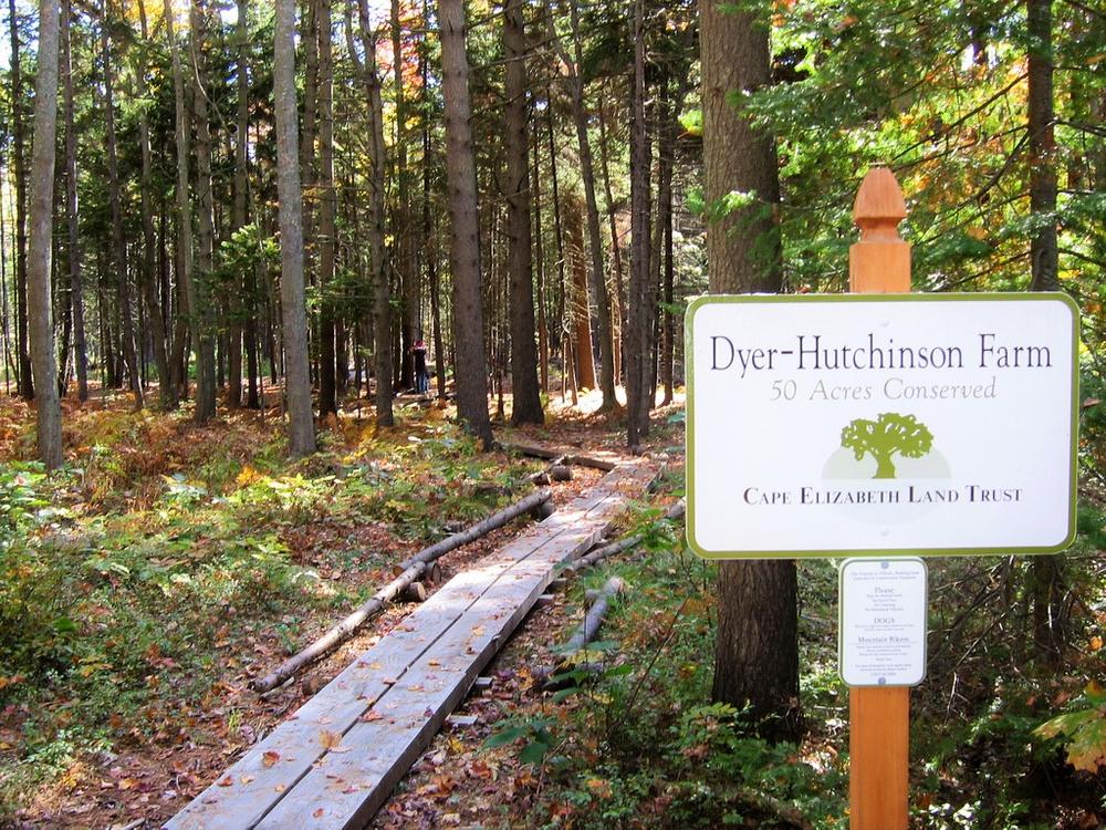 Cape Elizabeth Land TrustParking is available on the side of the road by the trailhead, next to and across from 1147 Sawyer Road. To get there, head east on Broadway from US-1, and go 0.7 miles. Turn right on Evans Street, and go another 0.7 miles to Highland Avenue. Turn right on Highland Avenue and go 0.2 miles. Turn left on Ficket Street and go 0.7 miles to Sawyer Road. The trailhead is 0.3 miles down Sawyer Road on the left, just past the Christmas tree farm.