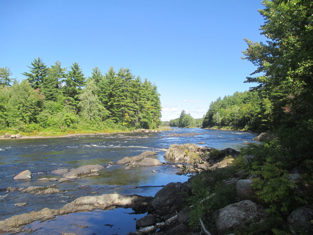 To continue downriver on the East Branch of the Penobscot between Grindstone and Medway, either run Grindstone Falls (Class II+) or portage around the falls on the Grindstone Falls Trail.