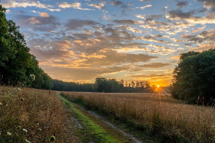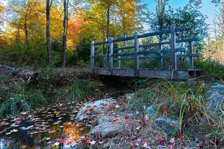 The Kelsey Brook Trail traverses the back of a Mitchell Ledge Farm field, then follows Kelsey Brook for about one mile, crossing the brook midway then passing another farm field. At 1.5 miles, the trail crosses the brook again to reach the Jackman Trail. The trail circles a working farm field; please keep your distance from livestock. Pets are not allowed on the Kelsey Brook Trail.
