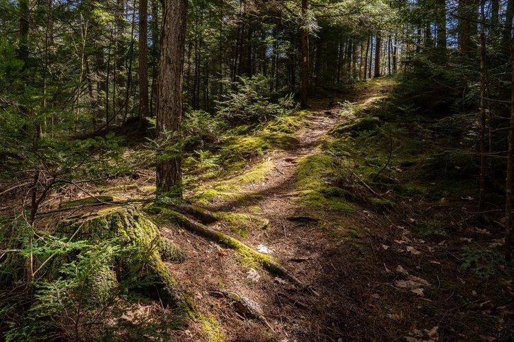 The Brimstone Hill Trail begins with a short, hilly loop followed by a leg out to Kelsey Brook. The trail connects to the Jackman and Forest Ridge Trails, and is about 0.75 miles one-way.
