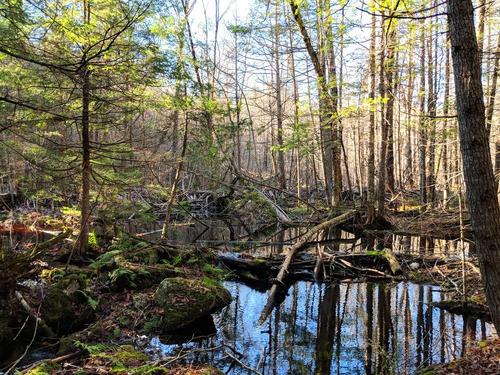 The 163-acre Ezra Smith Wildlife Conservation Area is part of an extensive undeveloped forested and wetland landscape in the Taylor Pond-Hopkins Stream corridor in Mount Vernon. George and Linda Smith and their family have spent many years exploring these woods and wetlands. In March of 2018, they donated their 125-acre woodlot to KLT with the intent that the land would be used to teach children about the importance of conserving Maine's wildlife and their habitats.