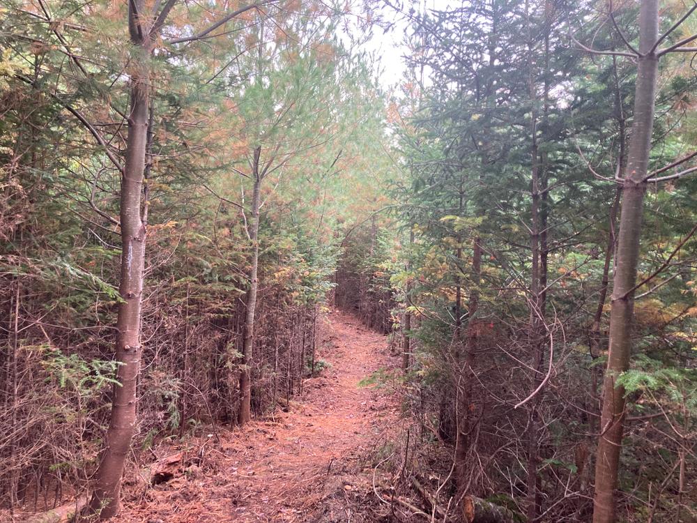 There is additionally a small, off-level parking pull-off at the top of the hill on ME-41, which accesses the trail system near the south end of the Deer Loop.