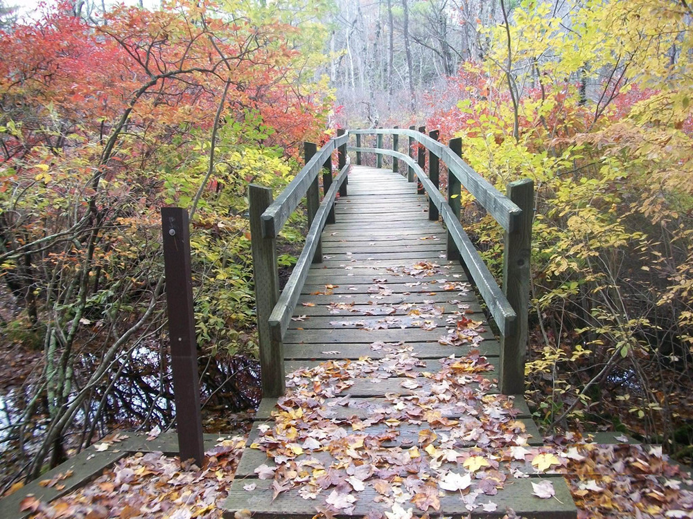 There is a 1.7-mile network of trails that for the most part are barrier free and pass through varied ecosystems. The Tupelo Trail (0.4 miles) begins at the trailhead and traverses through a tupelo swamp on a raised boardwalk. Along this trail, there is a large stand of Tupelo trees (also known as a black gum tree). This tree is very rare in Maine and is one of the largest stands of trees at this latitude level. The swamp is also home to many high bush blueberry plants, whose berries provide important late summer and early fall food for numerous birds and mammals.