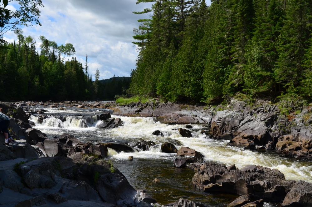 The Fish River Falls Trail is a short hiking trail through dense woods of birch and pine leading to the spectacular Fish River Falls, a Class IV rapid.