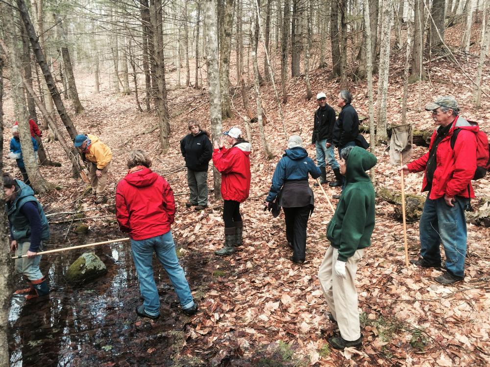The trail offers some challenging terrain as it climbs over bedrock outcrops. Several Leopold benches crafted by the Alternative Education program at Mt. View High School provide trailside locations to rest and reflect. A kiosk funded by a Maine Outdoor Heritage Fund grant features information on the vernal pool residents.