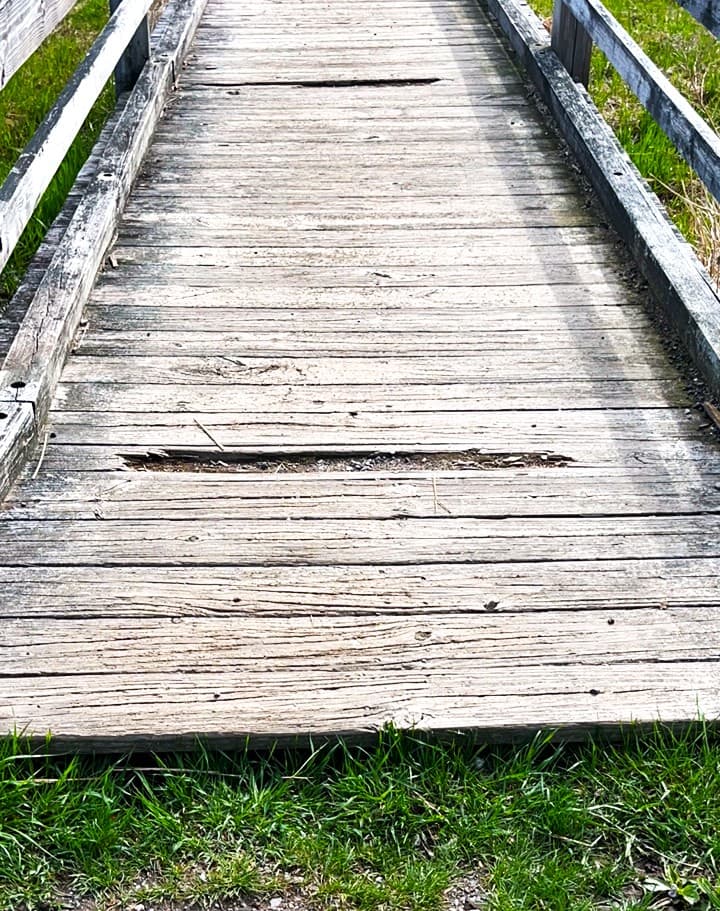 The Hayfield Trail is a mix of mowed grass and boardwalk and features a bench. There is one short incline. The Overlook Trail is mowed grass with an incline and some wet areas. There is a bench on the Overlook Trail close to the junction with the Bird trail. The Hayfield and Overlook Trails together make a 1.8 mile loop around the meadow that offers accessibility for many people. (See Trail Access Information & Considerations below for more details about this access(ible) experience.) The trail is wide with a mostly mowed grass surface with slope and cross slope typically 3-5%.