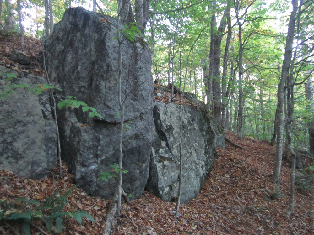 The Hogback Mountain section of the Georges Highland Path trail system in Montville, ME, takes hikers past the gigantic glacial erratic known as “piano rock,” through a young beech forest, and up a 50-foot cliff with tiny cascading waterfalls. The payoff at the summit (1,115 feet) is a fantastic southerly view of the Georges River watershed. Hogback Mountain sits to the west of Frye Mountain and the trails of both mountains are linked for an 11-mile adventure.