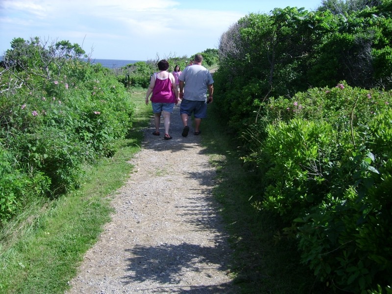 The Giant's Stairs trail and property is owned and maintained by the Town of Harpswell. In 1910 the 2.5-acre strip of coastal land was deeded to the Town by Captain William Henry Sinnett, a lifelong resident of Bailey Island. Historically there was a narrow foot path filled with poison ivy that led to the monument and beautiful views, but in 2008 with a Maine Recreation Trail Grant, the Maine Conservation Corps and various Town committees and community members, the rustic 700-foot path was resurfaced, widened, and stabilized. The remaining 700 feet of trail runs across the rocky ledges where you can find a small rocky beach, Pinnacle Rock, and "Thunder Hole." Please be sure to follow the red blazes along the rocks to stay on Town property.