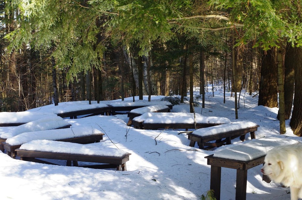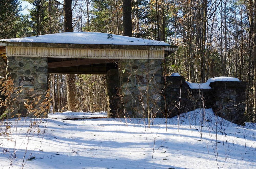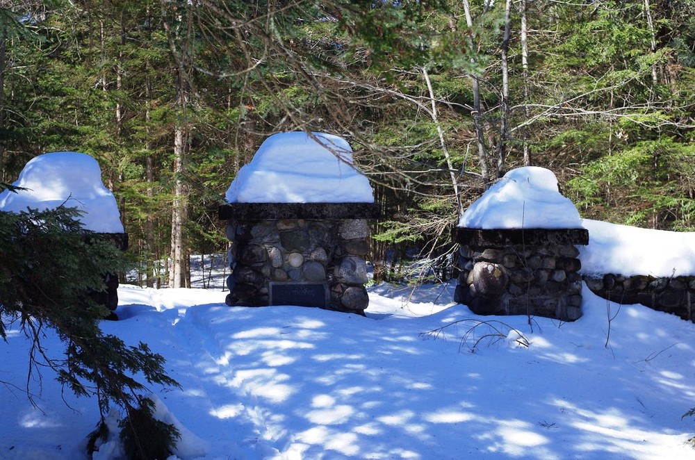 Along the trails are monuments or trail entrances made of local field stone. These include Murray tablets a monument in the shape of an old fashion pulpit. It is dedicated to “Adirondack Murray”, Henry Harrison Murray, whose 1869 book “Camping In the Adirondacks inspired Hinckley’s trail building and recreational programs for children. The Theodore Roosevelt Monument notes his efforts as President for conservation. The Seton Fireplace Stone Chair was built for Earnest Thompson Seton, and early leader of the Boy Scouts of America who wrote books about the natural world and was a friend of George Hinckley. Seton was known as the “Black Wolf” in the Boy Scouts and the chair “The Black Wolf Seat” was named for him when he visited campus.