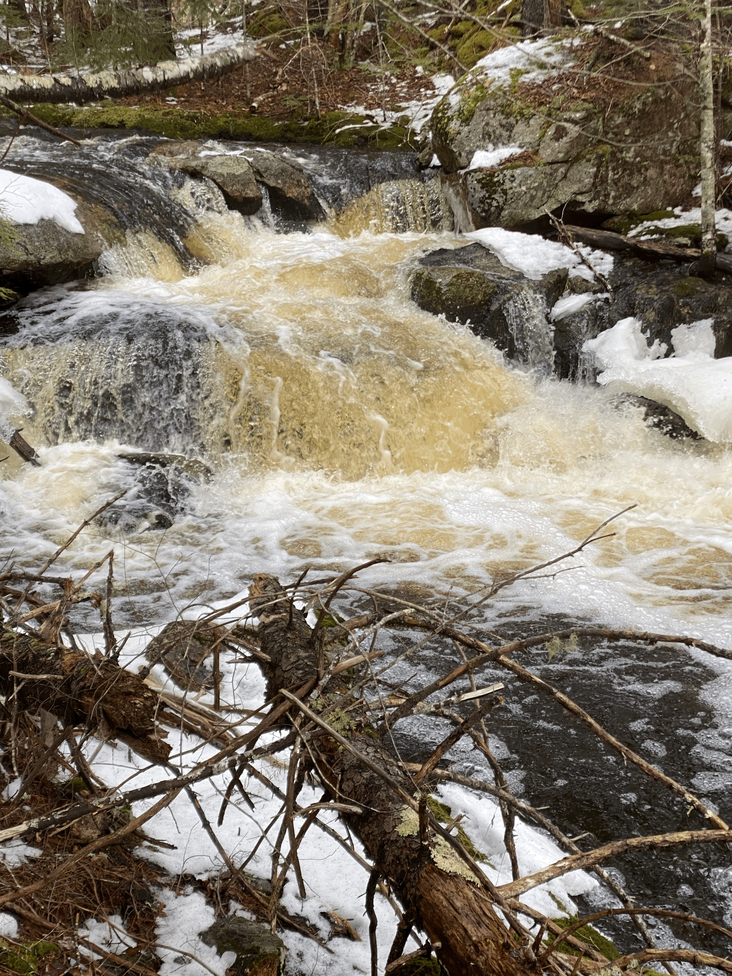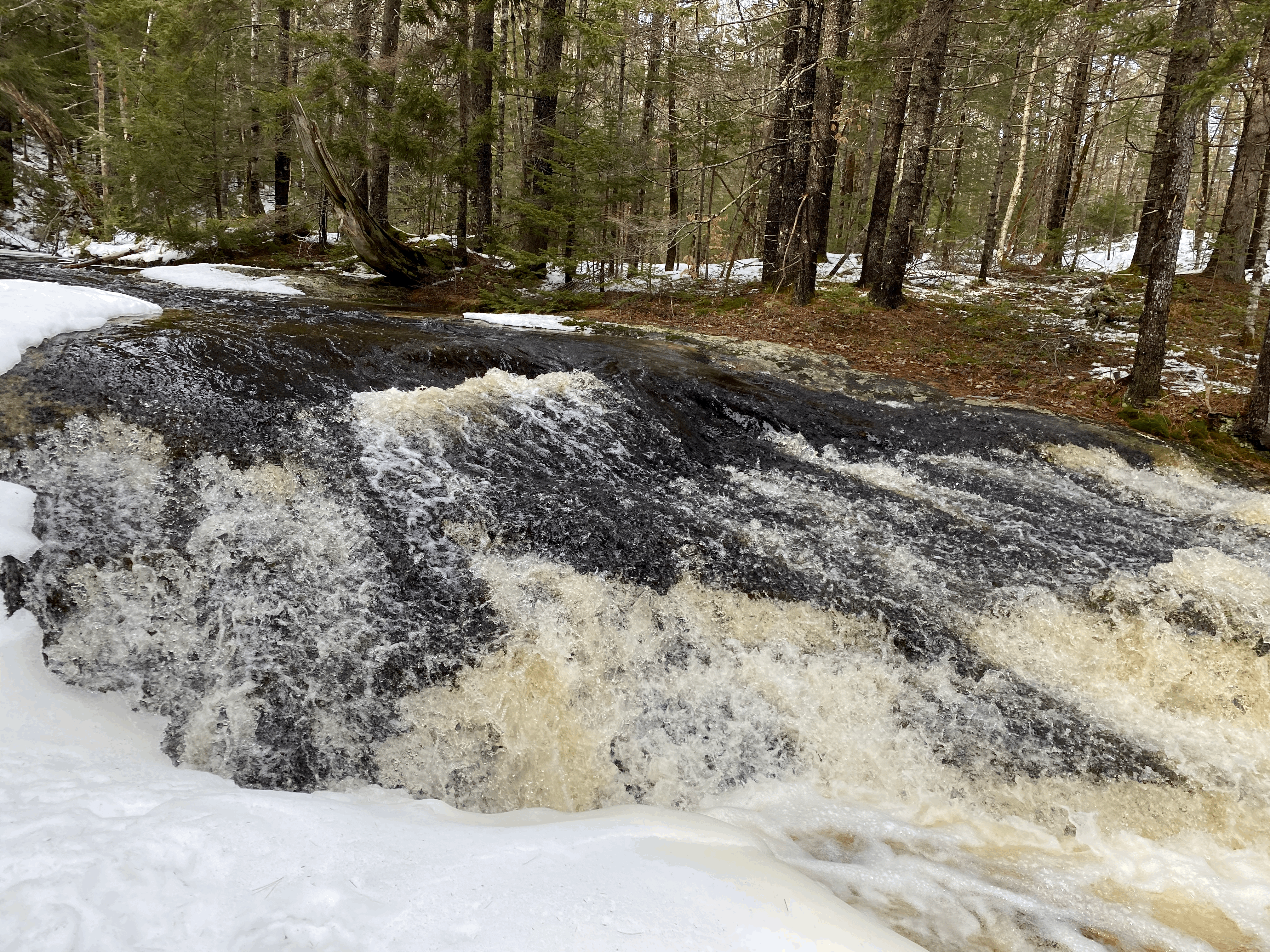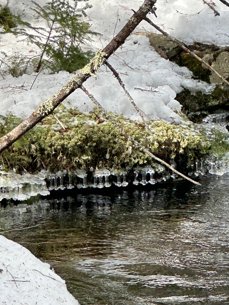 The Goose River trail follows the Goose River before looping back through the woods to Finntown Road. The Mill Pond Trail begins across the road 400 feet west of the kiosk. It skirts the edge of the bog before reaching the southern edge of Mill Pond.