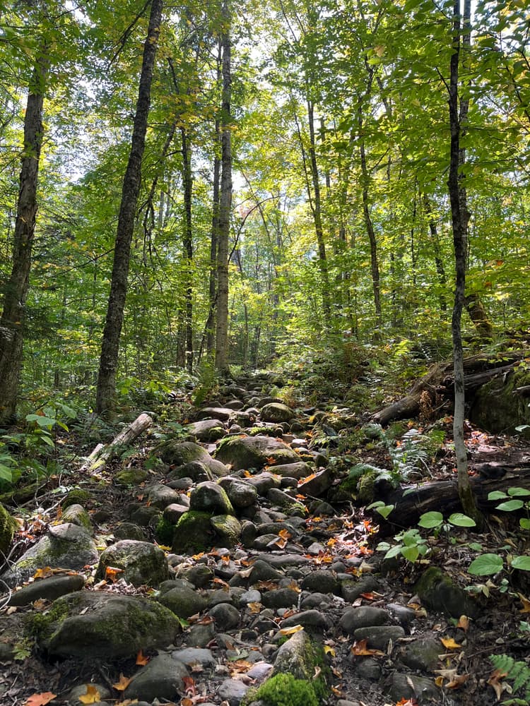 The route can be hiked as a one day experience, a moderate 12 miles in length. But for those who want to take two days to hike it, an AEHS campsite by Middle Carry Pond could be utilized (reservations are required, via emailing AEHS).