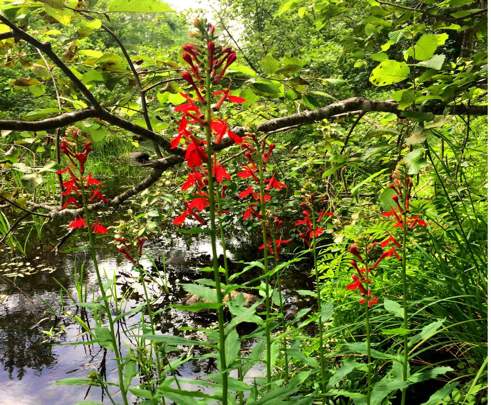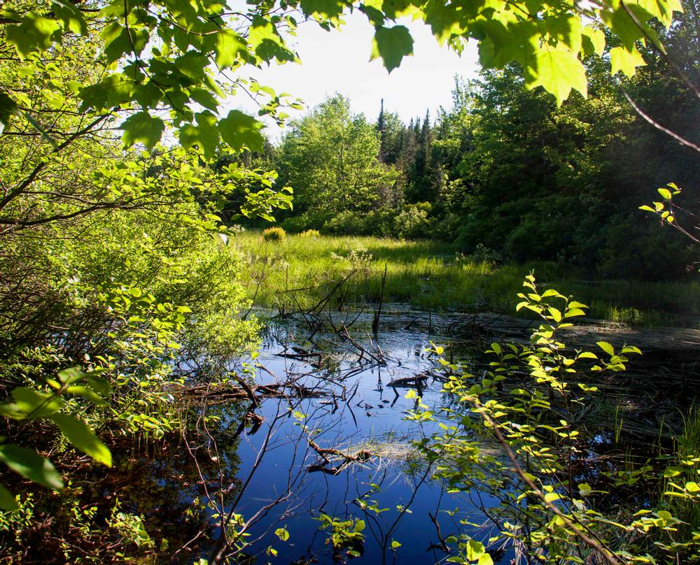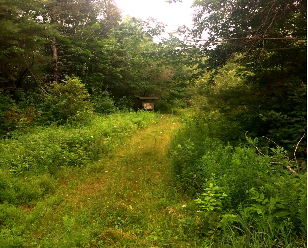 The Great Farm Brook Trail is easy to find and excellent for a casual walk with children and dogs. The path is wide and fairly flat. There is access to a large pond on the west side of the trail, which fills with the chorus of frogs in the spring, and Great Farm Brook runs along the eastern boundary. At the end of the trail there is an open field with abundant bird activity.