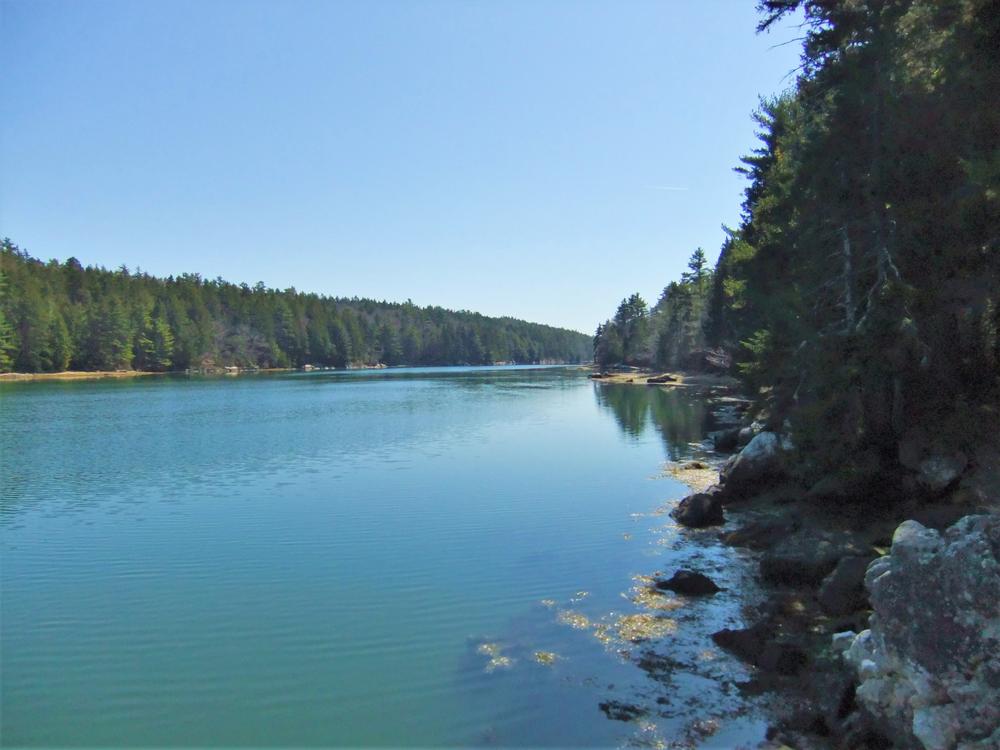 This trail loops around a heavily wooded property with extensive frontage on the Back River, an eastern branch of the Sheepscot River. There are extensive views to the north to the bridge which connects the Boothbay mainland to Barter Island, and across the river to undisturbed wooded shoreline. Hikers can enjoy walking around a small pond bordered by wildflowers and edged with cattails. Bullfrogs and dragonflies revel in this natural habitat, as well as deer, small mammals, and a variety of birds. The trail meanders through widely varied woods, including evergreens, oak, maple, aspen and birch.