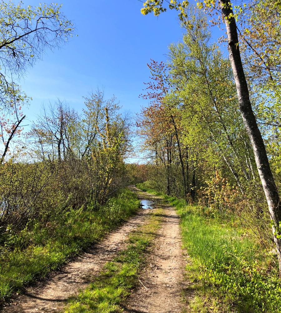 The Bog Road Trail begins at the west end of Bog Road, and travels 2 miles northeast along the dirt road, making for an out and back trip of 4 miles. At the boat launch 0.8 miles in, and at additional locations further up, there are swimming spots in the Saco River if it is a scorcher!