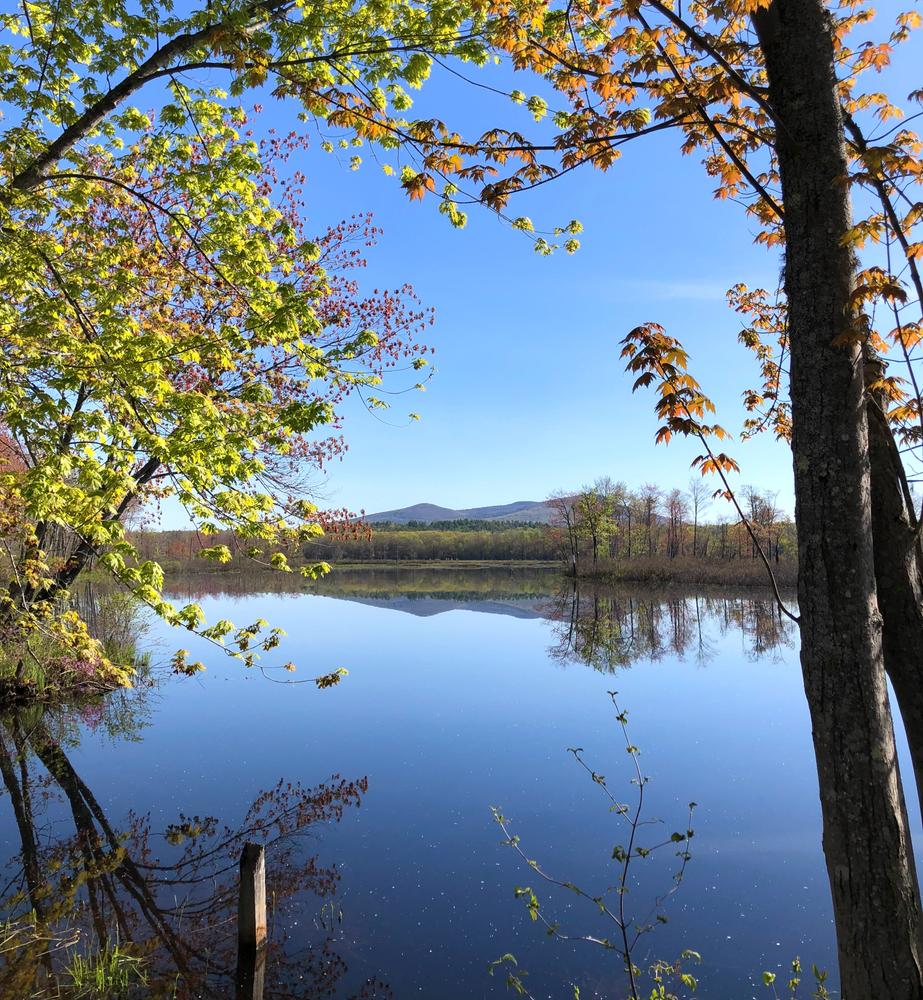 The Bog Road and Island Road Trails are part of a network consisting of wide roads through the wildlife management area. It attracts people who enjoy wildlife and nature walks as well as those who like to drive and sight-see. This peaceful site is worth visiting for many reasons, and is particularly valued by Maine birders as it contains species more commonly found in southern New England. Pleasant Mountain and other hills provide a backdrop to the bog.