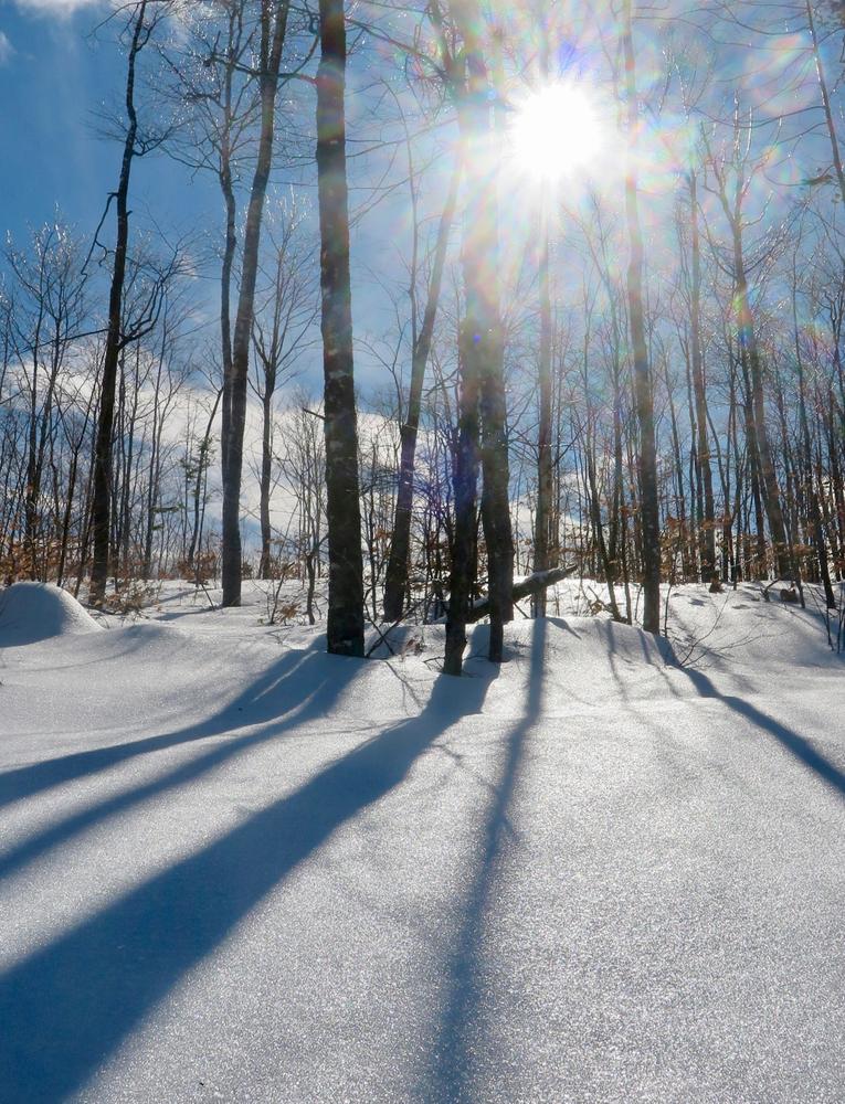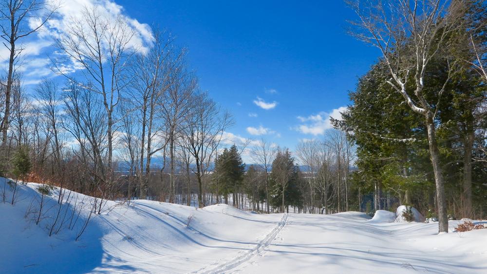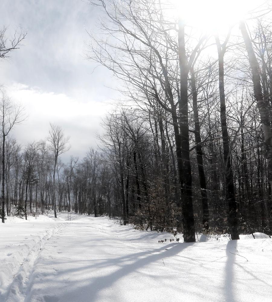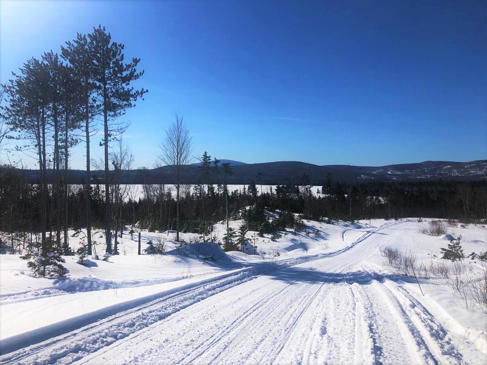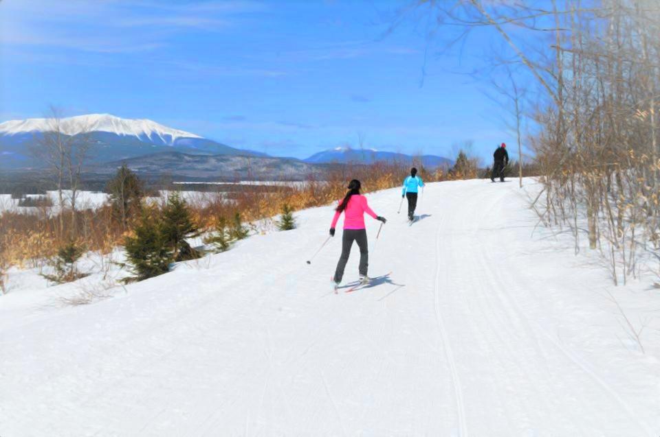 KATAHDIN VIEW TRAIL (1.6 miles) offers a moderate climb up to a spectacular view of Katahdin, and a moderate ski back down.