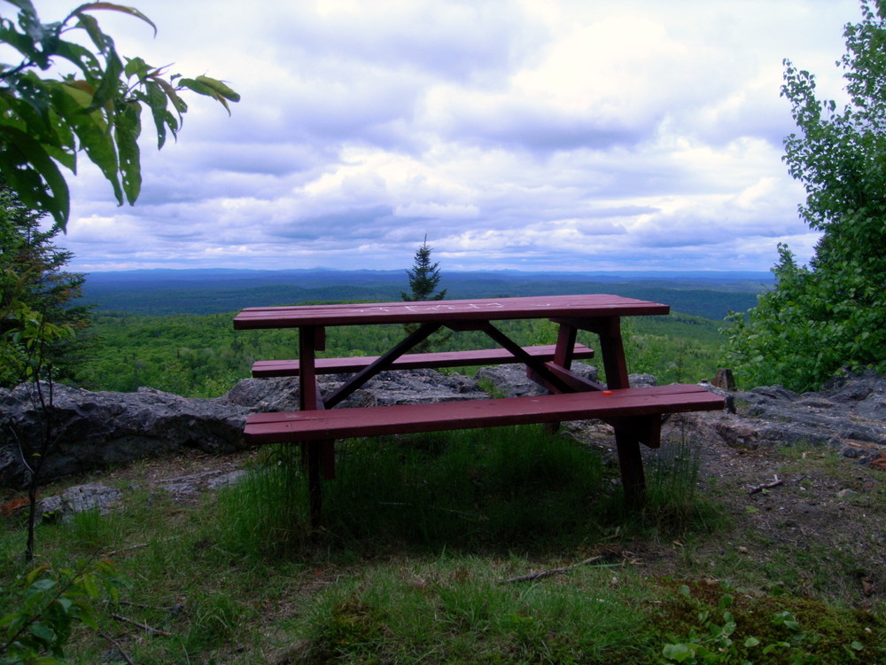 The Hedgehog Mountain Trail is a forest floor hiking trail leading up the south ridge of Hedgehog Mountain. Though the trail is relatively short, only 0.75 miles to the summit, it is fairly steep and is a good workout. Shortly after the trail begins, it leads through the yard of an old hunting camp. Once the summit is reached, hikers can relax at a picnic table and enjoy the splendid view of the North Maine Woods, Portage Lake, Fish River, and St. Froid Lake to the south and west. On clear days, Carr Pond Mountain can be seen to the southwest, as well as Deboullie Mountain and Black Mountain to the northwest.