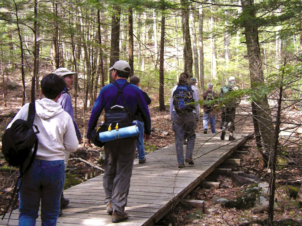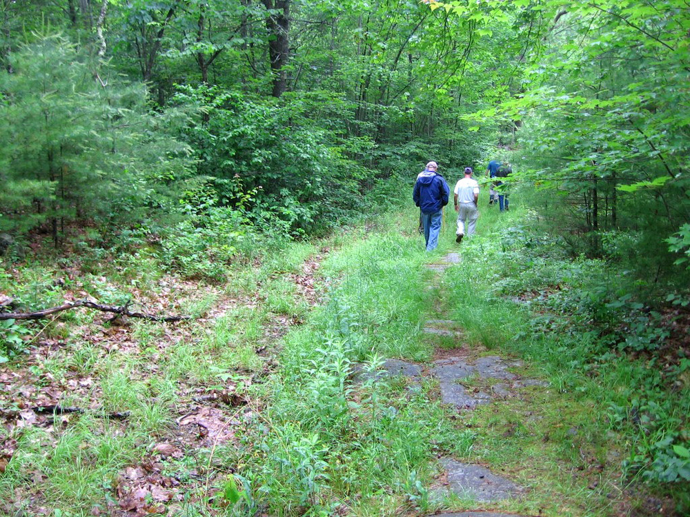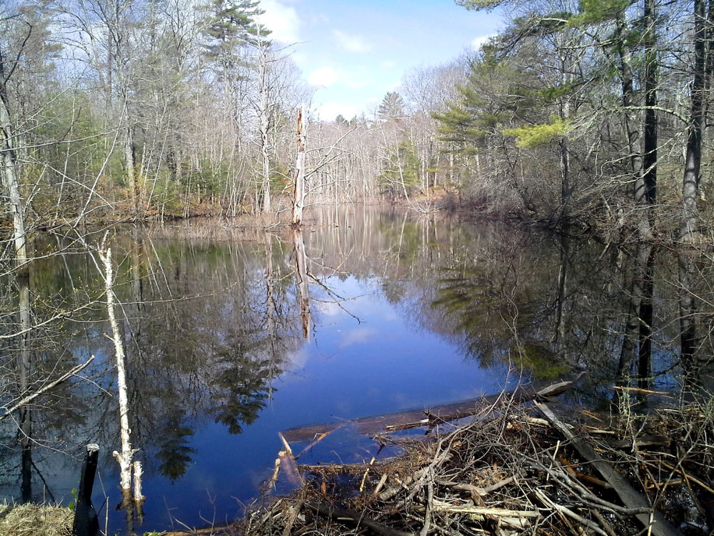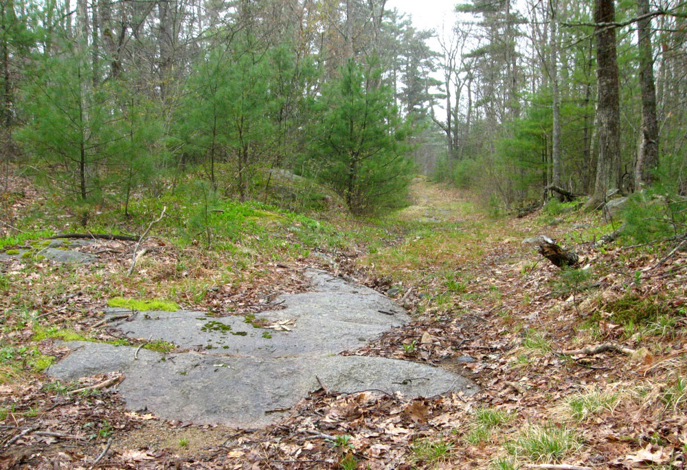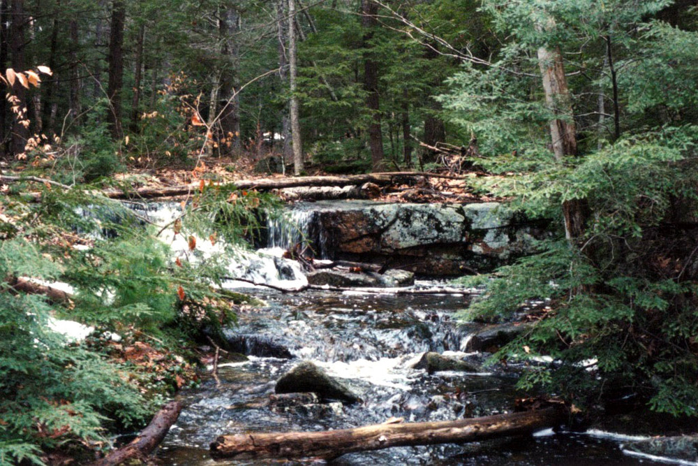 The Boardwalk Trails leads from the kiosk through a forested wetland and later crosses a rocky stream and waterfall at an old milldam site. It is likely the site of a sawmill or gristmill that was abandoned in the late 1800's. Maps from this time also show a house located adjacent to the trail where a cellar hole remains on the other side of the river.