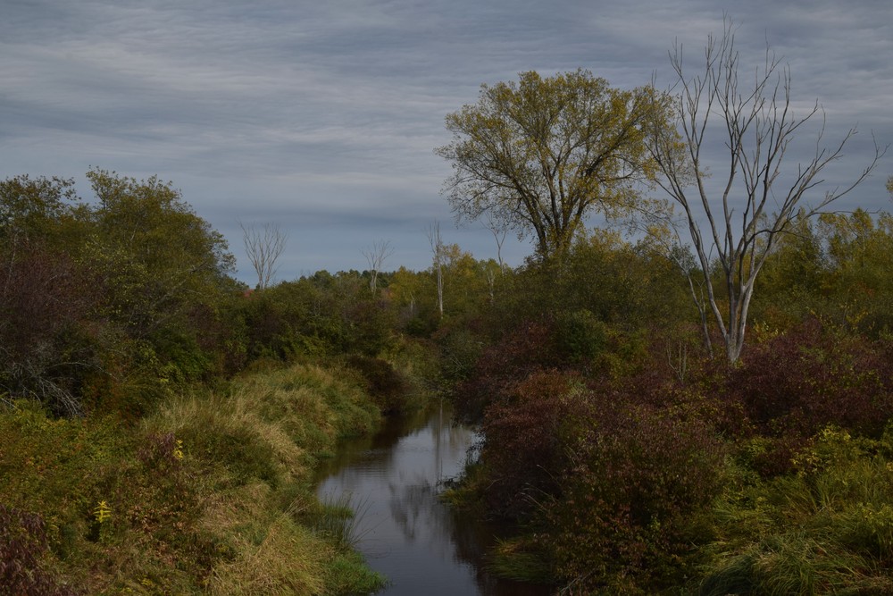 The flat half-mile loop trail in a 100-acre preserve along the Royal River provides gentle walking with occasional plank bridges to avoid wet areas. The forested trail provides views onto the river's fresh water flood plain marsh and vernal pools, a popular destination for birders and sports. The marsh is an outstanding vantage point for observing migrating birds especially in May of each year.